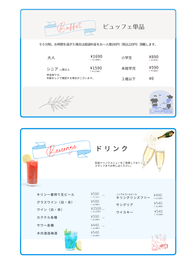 | 大人 | ¥1790(税込¥1969) |